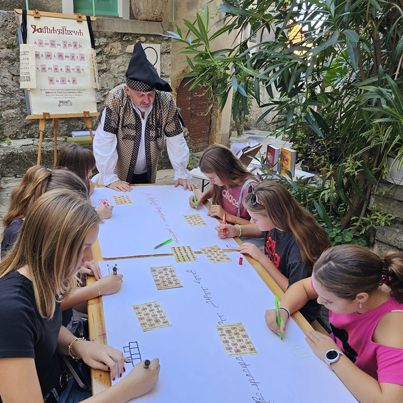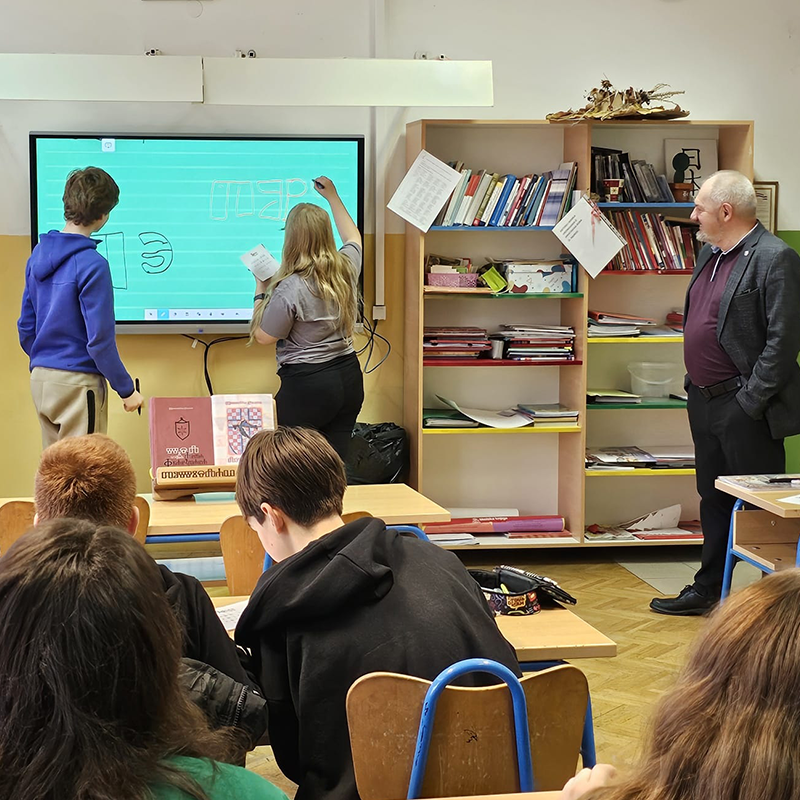 Posebno me raduje svaka prilika susresti se s malim glagoljašima u malim sredinama. Nemam ništa protiv većih gradova i velikih škola - da odmah bude jasno - no posjete malim sredinama imaju za mene posebnu čar. Dolazak u Osnovnu školu Đakovački Selci imao je još jedan vrlo poseban razlog - iz ove škole je na završnom natjecanje GlagoMatike održanom prošle godine u karlovačkom frankopanskom kaštelu Dubovac sudjelovao čak petero natjecatelja - što ih je činilo najzastupljenijom ekipom - a to je svake hvale vrijedna svih pozvala učiteljica Željka Mikšić.Radionicu glagoljice održali smo u jutarnjem terminu 12. ožujka 2025. te na zabavan i poticajan način, uz puno smijeha i komentara prošli osnove glagoljice. Svaki je polaznik naučio napisati svoje inicijale, ime, prezime, mjesto u kojemu živi i još ponešto. (...više)