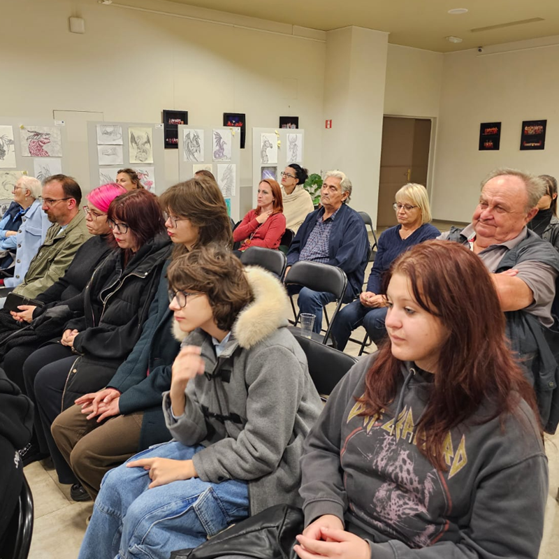 Roman „Legenda o hrvatskom zmaju“ predstavljena je u srijedu 1. listopada 2025. u „Demokratskom rasadniku“ POU Duga Resa u organizaciji Gradske knjižnice Duga Resa uz podršku Karlovačke Županije te u suradnji sa Srednjom školom Duga Resa, točnije razredom Grafičkog dizajna. Učenice i učenici, budući grafički dizajneri, i svi drugi crtači koji su to željeli prihvatiti izazov donijeli su svoj rad – crtež ili sliku zmaja. Najboljim radom prema izboru publike, a glasovanje je bilo stavljanjem post-it naljepnica na sliku, proglašen je crtež Eme Dujnić. Slavodobitnici sam svečano uručio nagradu – roman „Legenda o hrvatskom“ zmaju s posvetom na glagoljici i latinici.Za organizaciju ovog predstavljanja zahvalan sam ravnateljici POU Duga Resa Mateji Sestrić, a za moderiranje i onaj osjećaj da sam dobrodošao neumornoj Astrid Grobenski-Grgurić. (...više)