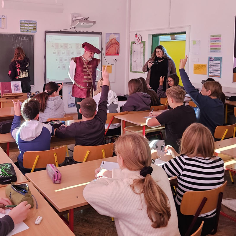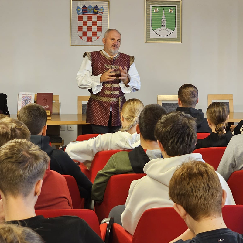 Vrlo zanimljiv dan Bibi i meni je priuštila Gradska knjižnica Novi Marof u utorak 28. listopada 2025. za što se posebno zahvaljujemo srdačnoj vrlo gostoljubivoj ravnateljici Lidiji Zečević te Karli Hegedić, koja nas je udobno i sigurno vozila bibliobusom po okolnim mjestima. Prvo smo bibliobusom s dragom Karlom otputovali u Budinščinu i tamo održali osnovnu radionicu glagoljice za učenike OŠ Vladimir Nazor. Kako to u životu često biva – dočekalo nas je ugodno iznenađenje – poznata osoba za koju nismo znali da ćemo je sresti. Naime, naša poznanica iz renesansne plesne družine Kontea s nekih kostimiranih događanja koja smo imali u Karlovcu, Perušiću, Trsatu i drugdje je Renata Kreber-Mikšaj - ravnateljica škole – što naravno nismo znali sve do tada. Tim susretom po tko-zna-koji-put se vidjelo koliko je svijet mali, ali i da se dobri ljudi uvijek rado sreću. (...više)